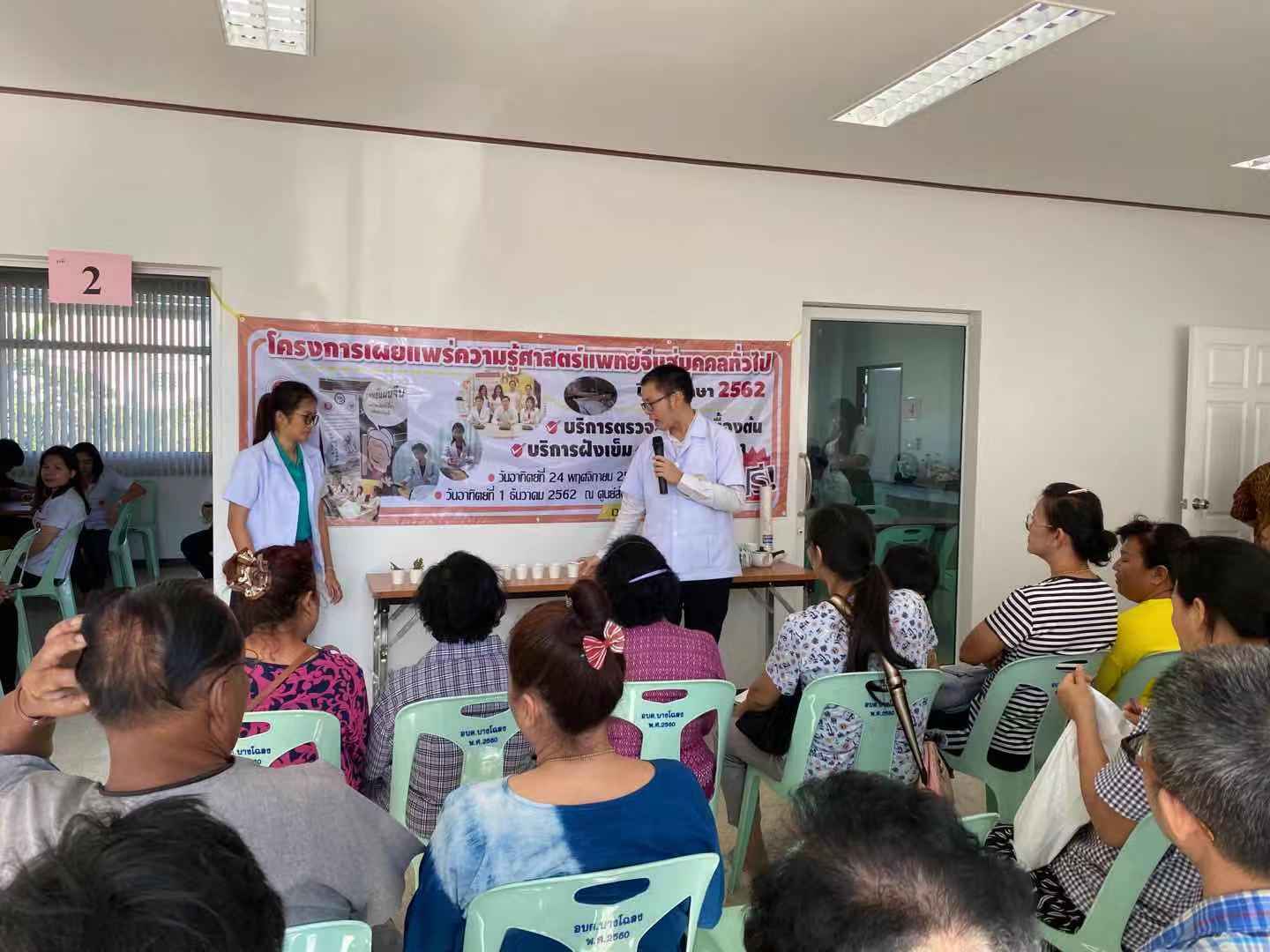 12月1日,泰国华侨崇圣大学中医孔子学院中医志愿教师邢皓博参与了Bang Chalong卫生局的中医义诊活动。此次中医义诊共吸引100多名当地居民和卫生部领导以及工作人员。