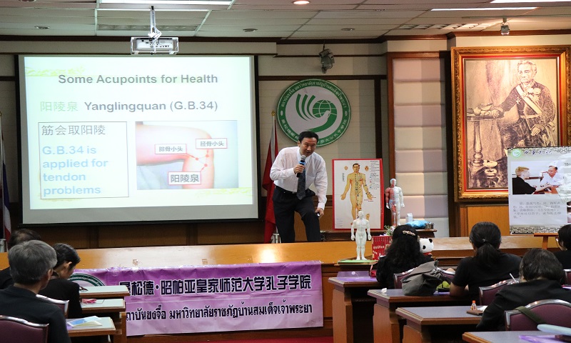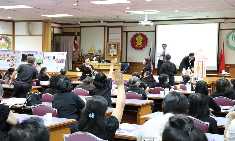 In October 16th, Confucius Institute for Traditional Chinese Medicine attended Confucius Institute at BanSomdejchaopraya Rajabhat University of the "people's livelihood concern" Chinese culture open day. Prof. Zhong Qiangwei, the director of Confucius Institute for Traditional Chinese Medicine at Huachiew Chalermprakiet University was give a lecture about "Chinese Medicine Health response to the Thailand hot and humid climate" , more than 100 Thailand local teachers and community people participated in.